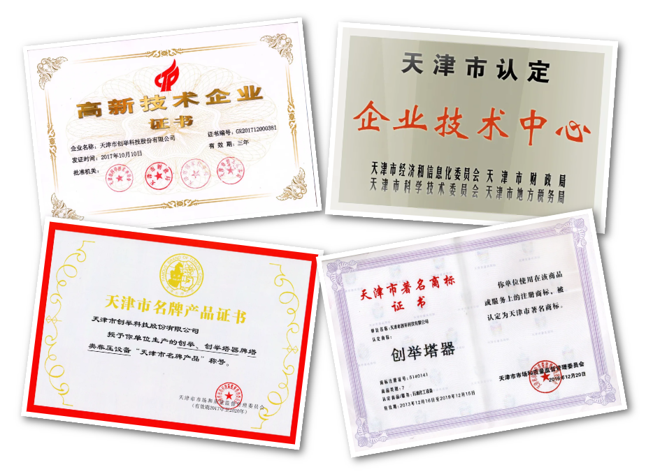 天津市創舉科技股份有限公司自成立以來,始終堅持“務實求發展、攜手創繁榮”的經營理念,不斷追求企業管理及技術創新,先后被認定為國家級高新技術企業,天津市守合同重信用企業,天津市科技小巨人企業、“中國塔器設備制造業10強企業”、“中國化工傳質設備十強企業”等殊榮, “創舉塔器”也已被評為天津市著名商標。