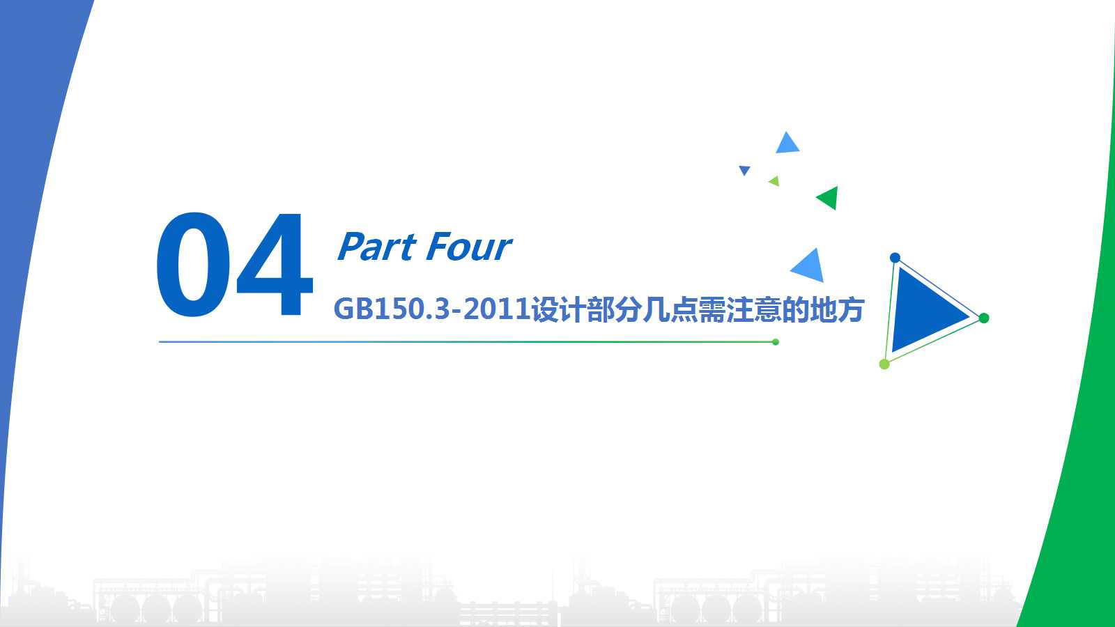 GB150.3-2011設計部分的技術條款絕大多數是用來控制強度、剛度、穩定性等失效模式的。它們給出了壓力容器各主體部分強度、剛度、穩定性所需厚度計算公式。