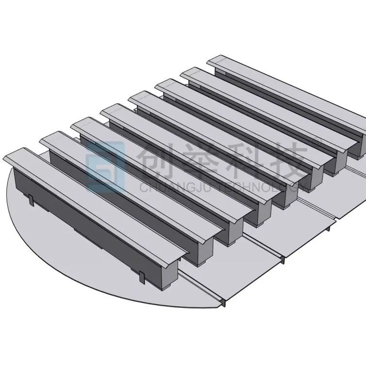 CJMP系列(膜噴射系列塔板)是在新型 垂直篩板 的基礎(chǔ)上開(kāi)發(fā)的專利產(chǎn)品,該塔板起初是為解決塔板抗堵問(wèn)題而開(kāi)發(fā),后又?jǐn)U展到低阻力降吸收物系以及取熱型塔板等。