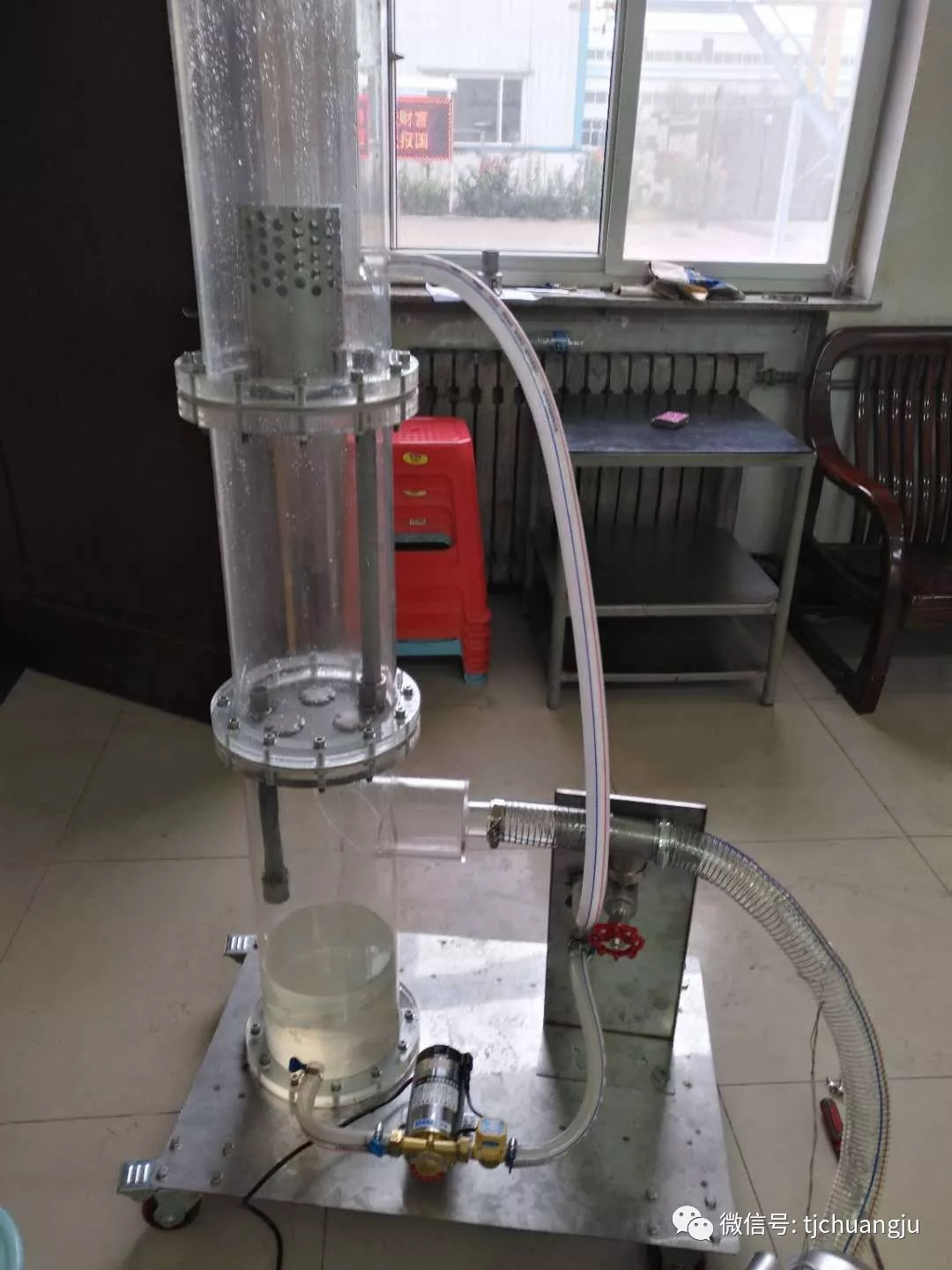 這是展會或行業(yè)會議展示專用的有機(jī)玻璃塔,配有水泵和風(fēng)機(jī)。