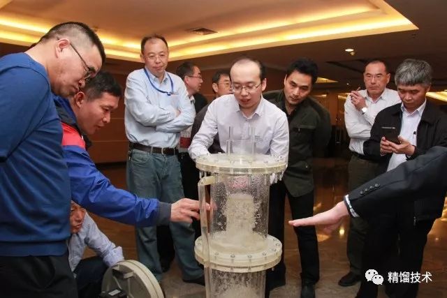 嘉賓們還觀摩了創(chuàng)舉帶來的冷模實(shí)驗(yàn)塔,對(duì)逆流系列塔板的技術(shù)有了直觀的認(rèn)識(shí)。