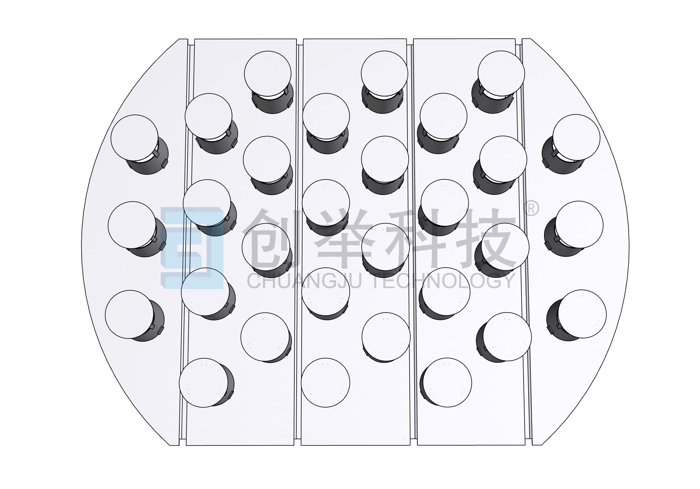 CJZP系列(錐筒系列噴射型塔板)是集前四大系列塔板的優勢而研發的專利塔板,經過實驗研究發現其結構更能滿足氣液縮流噴射的均勻性和分散性,傳質效率更高,適用性更廣,同時該塔板可針對不同工況需求進行結構調整。