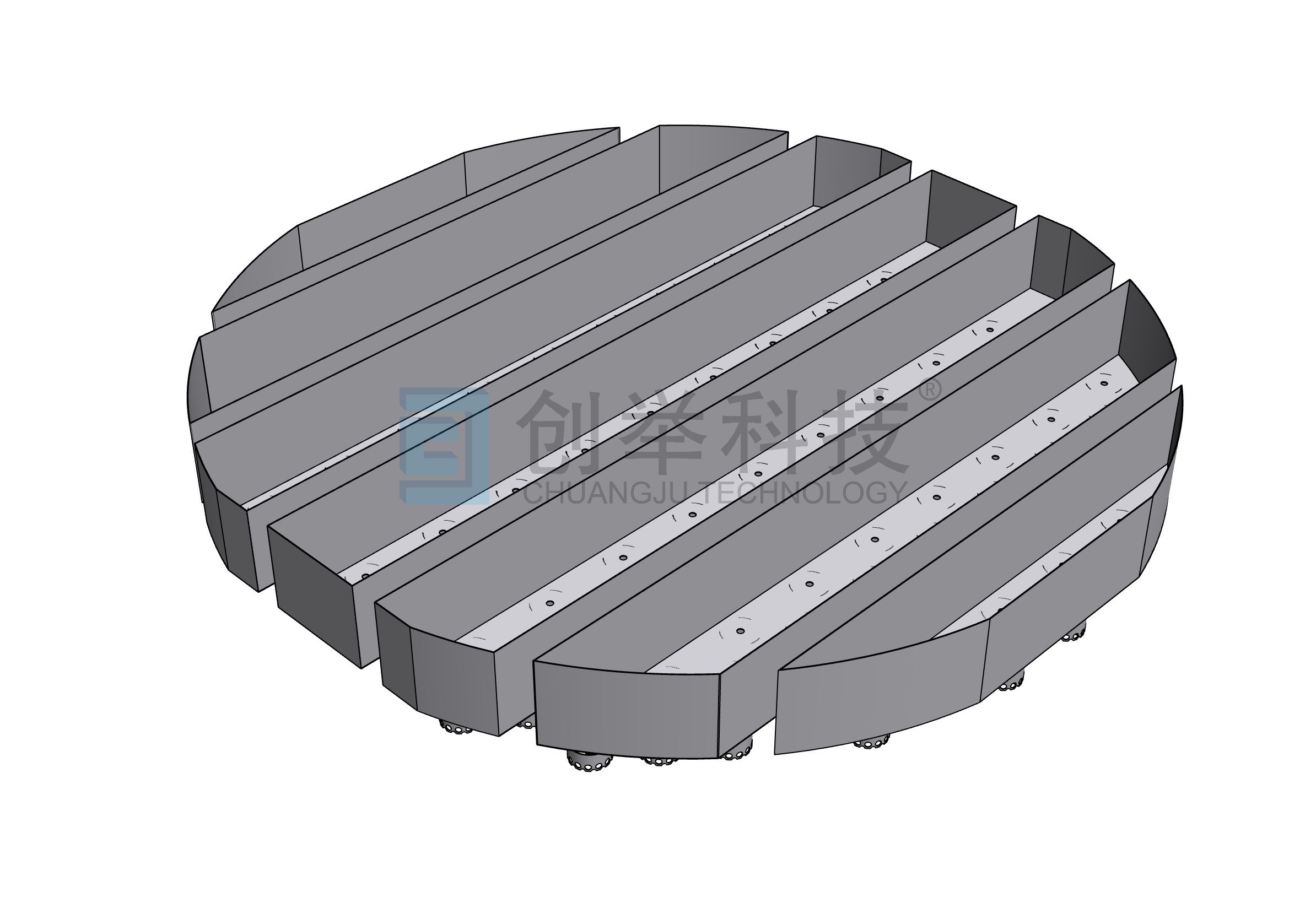 在液體沿亂堆填料層向下流動的過程中,會出現一種壁流現象。為緩解壁流導致的液體分布不均,在各段填料層之間安裝液體再分布設備,用于收集上一層填料流下的液體,并為下一層填料提供均勻的液體分布。